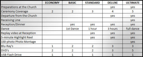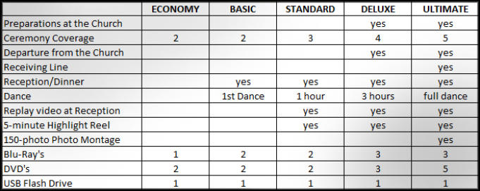 2 Camera Ceremony Coverage, 1 Blu-Ray, 2 DVD’s, 1 USB Flash Drive